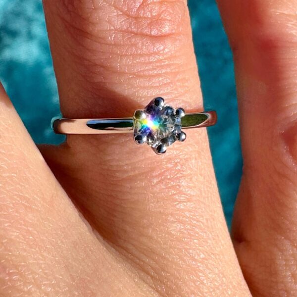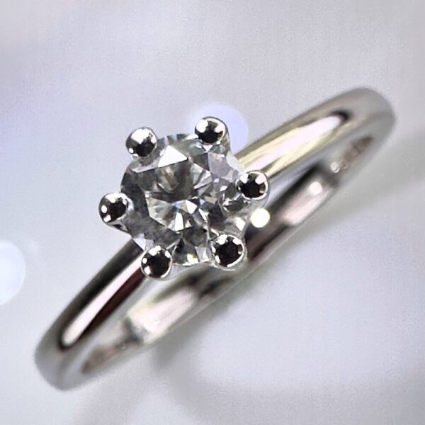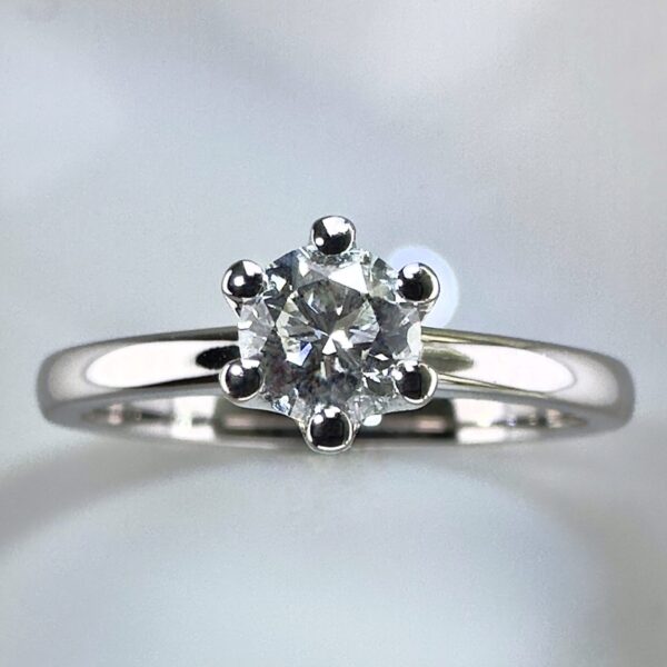 A refined 18-karat white gold ring showcasing a very rare natural white diamond, radiating elegance and timeless beauty.