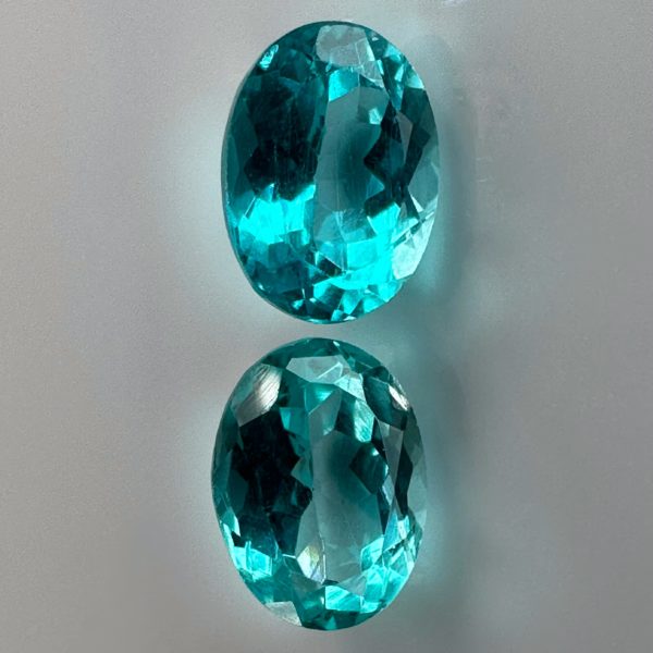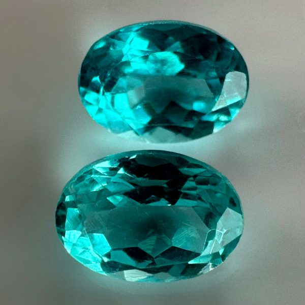 Very nice pair of Paraiba-type Blue Apatites. It is a rare variety, highly sought after for its color and transparency, which resembles the famous Paraiba Tourmaline. Great luminosity. Very good purchase choice.