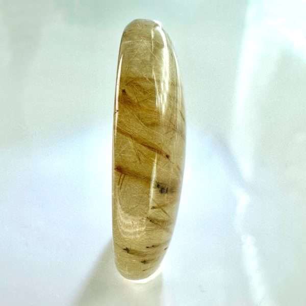 Beautiful and unique rock crystal with stunning Rutile needle inclusions. Harmoniously distributed golden sparks shining through the stone. Unique collectible or jewelry quartz.